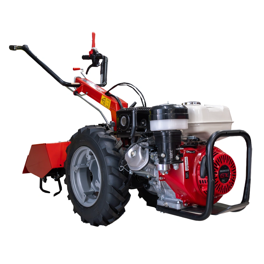 As rodas pneumáticas proporcionam uma excelente tração e estabilidade, garantindo que o motocultivador se mova de forma suave e controlada, mesmo em superfícies irregulares.