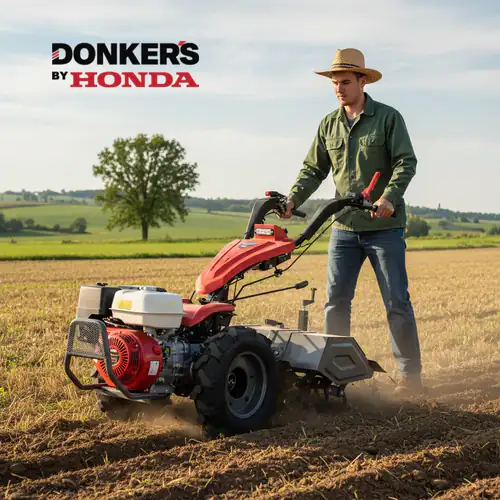 O motor Honda GX390 do Motocultivador Donker’s é um modelo de 4 tempos com 389cc e 12HP de potência, oferecendo excelente desempenho e fiabilidade.