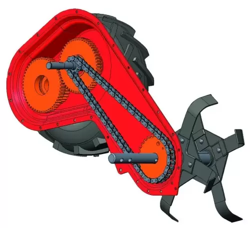 - Engrenagens e corrente em banho de óleo