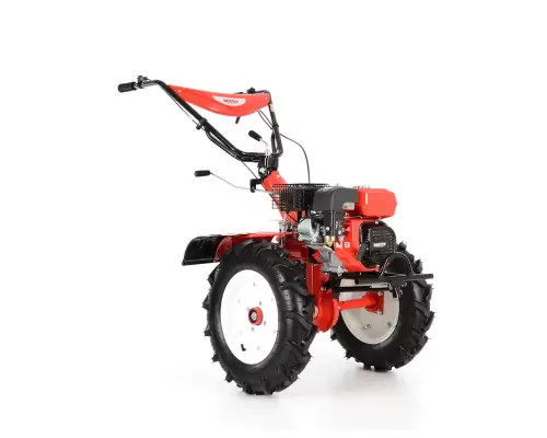 Equipado com caixa de 4 velocidades (3 para a frente e 1 para trás), confere-lhe o poder de conter rodas pneumáticas de grande dimensão e ser acoplado a um atrelado sem qualquer problema. (em opção)