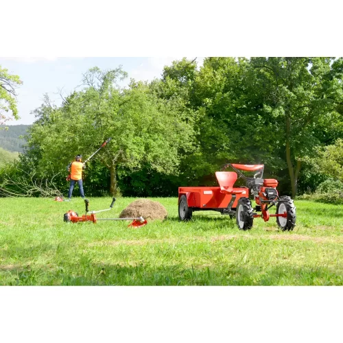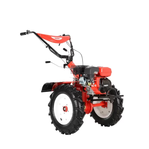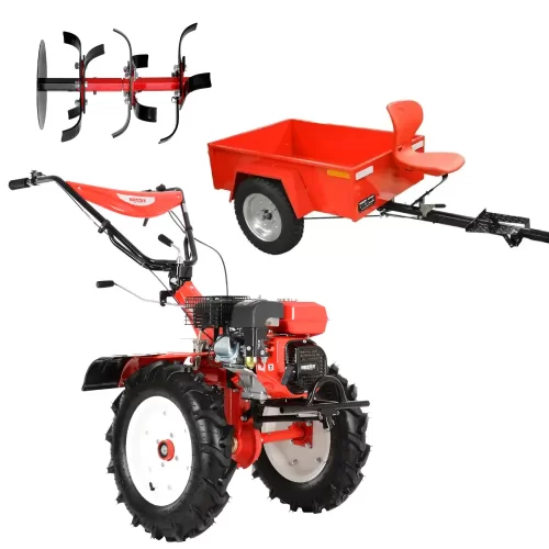 Motoenxada Hecht 7HP c/ atrelado 500kg, potente e robusto motor de 7HP 212cc, 4 velocidades e excecional largura de trabalho de mais de 1M. Preparação de jardins ou cultivo de terrenos agrícolas de média dimensão.