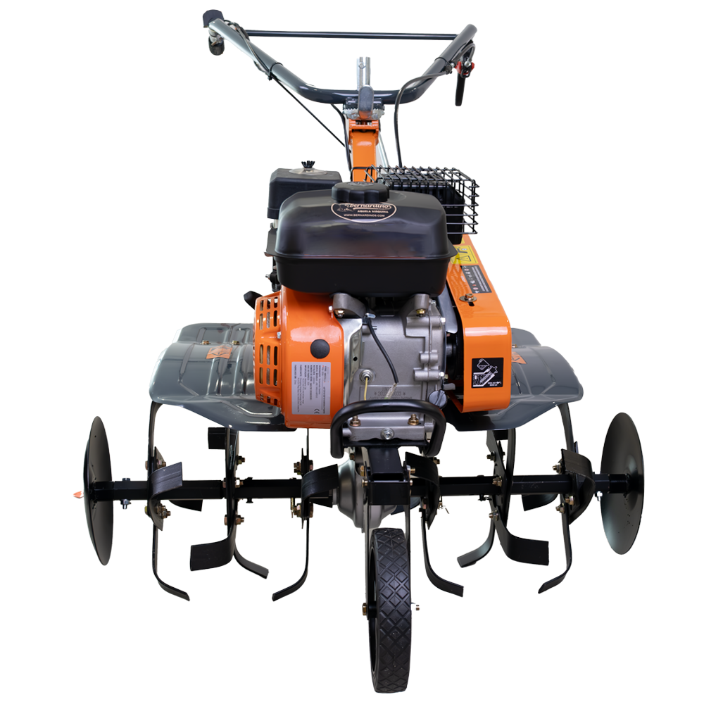 Conta com um potente motor de 7Hp, 3 velocidades (2 para a frente e 1 para trás) e uma largura de trabalho de 80 cm.