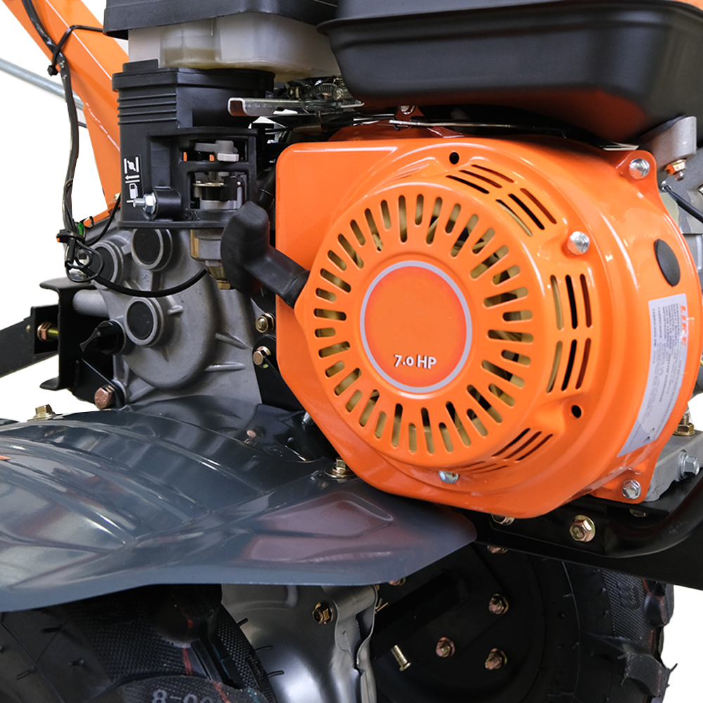 O motor da motoenxada com 212 cc entrega 7 Hp de potência.
