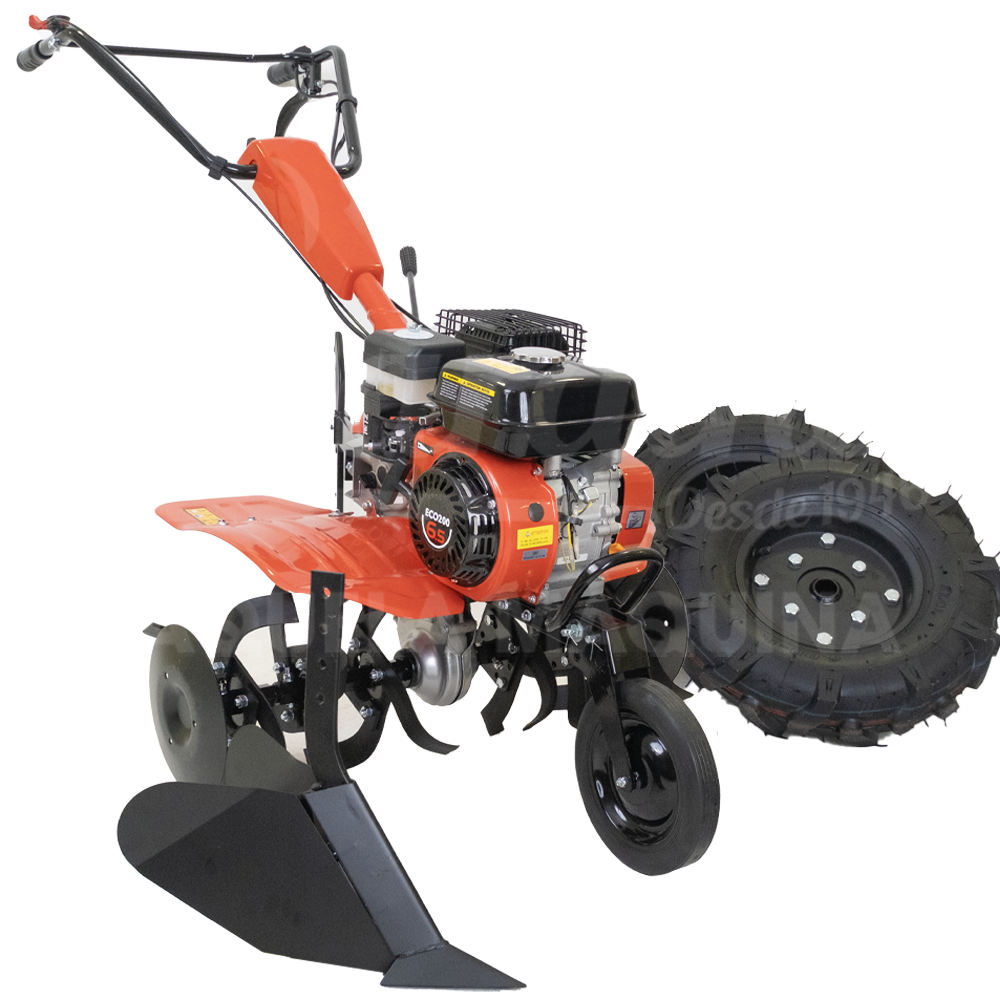 Versátil no trabalho, a Motoenxada TM-500G2R 6,5 HP c/Rodas e Abre Regos permite acoplar múltiplas alfaias e faz o trabalho de qualquer motocultivador.