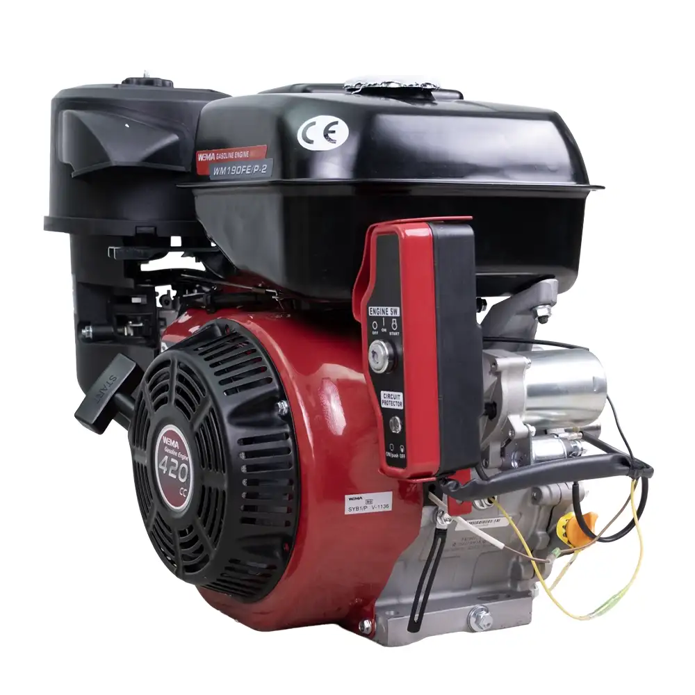 O Motor WM190FE Weima é um motor a gasolina de quatro tempos, com cilindro único e sistema de refrigeração a ar. Este motor oferece 16 cv de potência e consome aproximadamente 374 g/kWh de combustível. Graças ao seu depósito de 6,5 litros, pode funcionar continuamente durante cerca de 1,5 hora sem necessidade de reabastecimento.