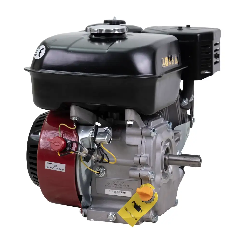 O Motor WM170F Weima é um motor a gasolina de quatro tempos, com cilindro único e sistema de refrigeração a ar. Este motor oferece 7 CV de potência e apresenta um consumo de combustível de aproximadamente 395 g/kWh. Com um depósito de 3,6 litros, pode funcionar de forma contínua durante cerca de 2 horas, sem necessidade de reabastecimento.