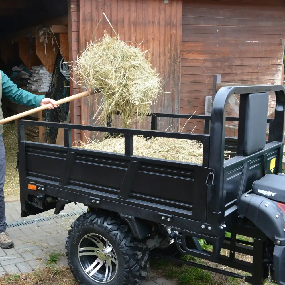 A moto 4 Hecht Farmis com caixa de carga e motor elétrico a bateria de 3000W é ideal para trabalhos exigentes seja no sector agrícola, florestal ou no setor da construção.
