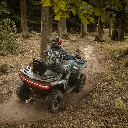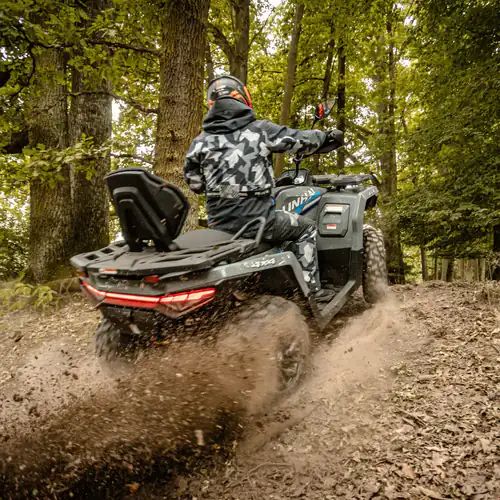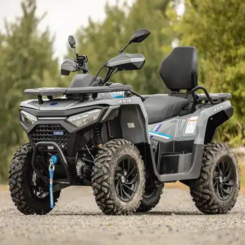 É uma Moto 4 robusta e versátil, fabricada tanto para trabalho como para lazer e diversão. Com um design resistente e uma altura ao solo elevada, está preparada para enfrentar diferentes tipos de terreno, desde trilhos e caminhos rurais até ambientes agrícolas ou florestais.