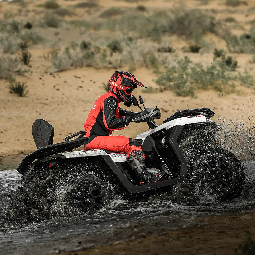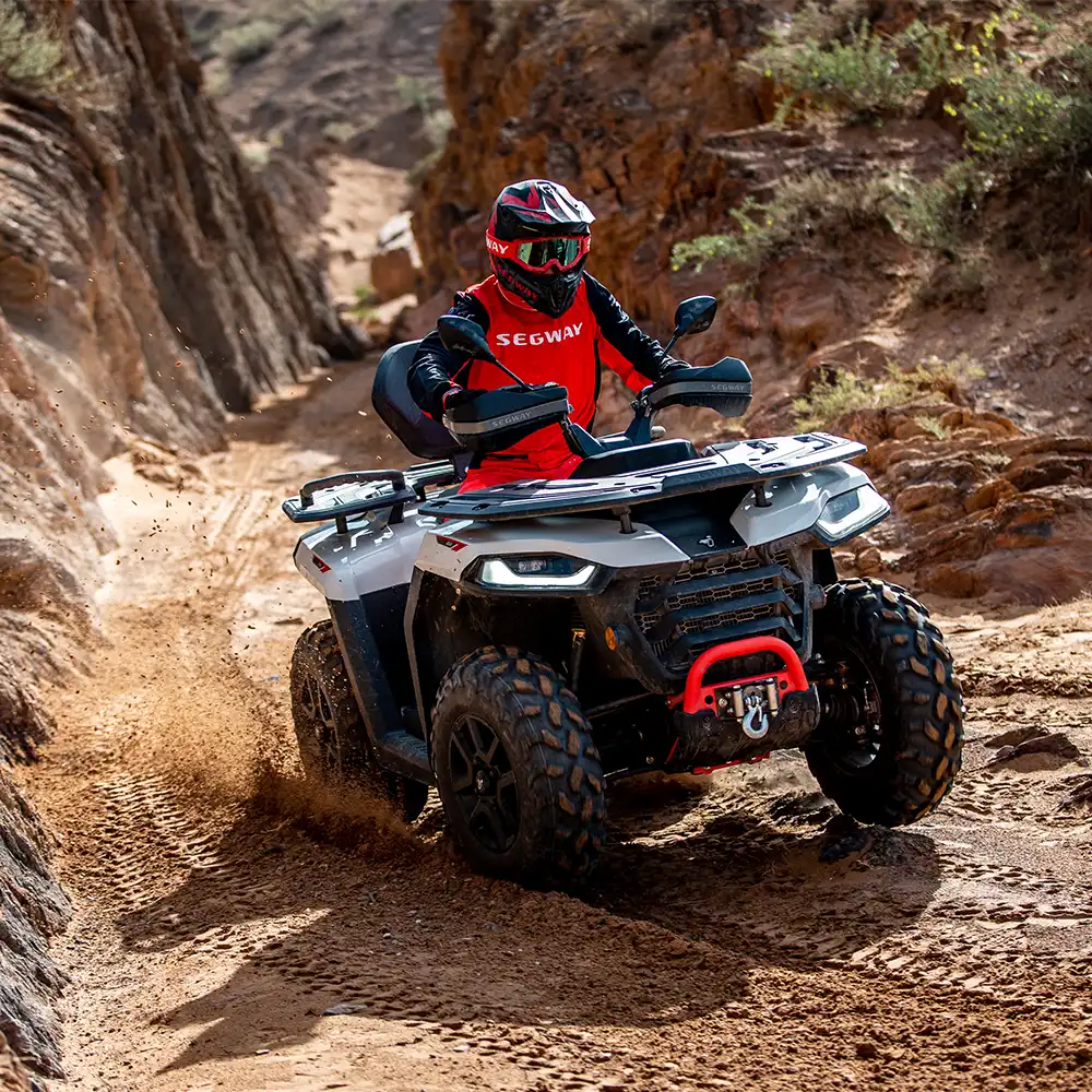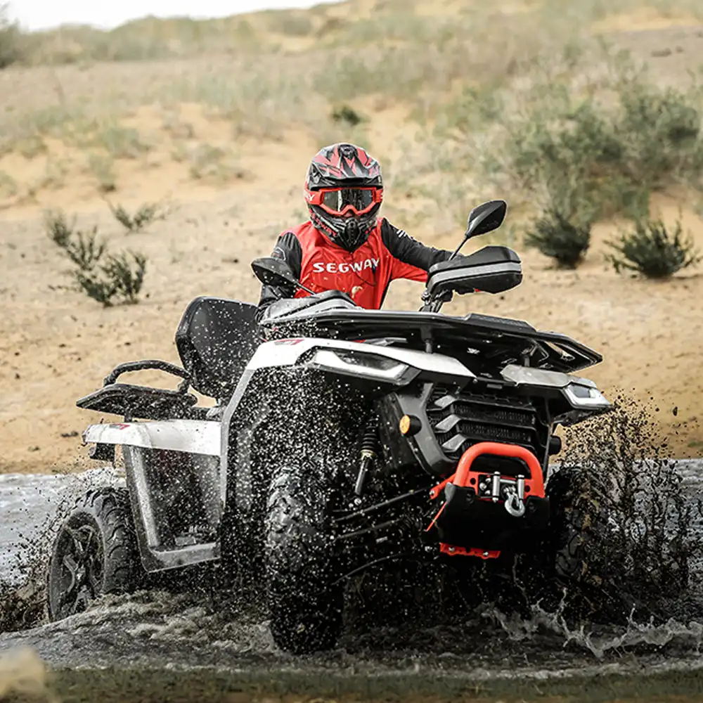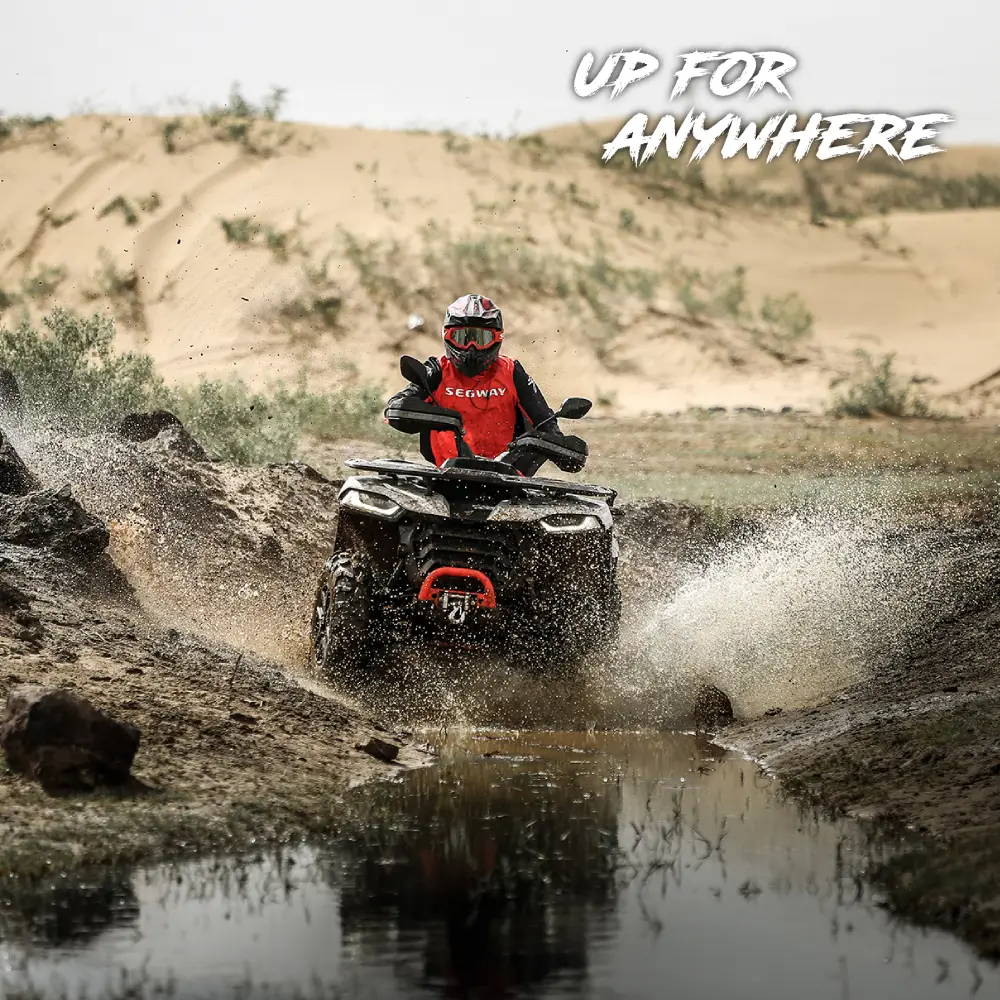 Todas estas características tornam a Moto 4 Segway AT5 LX adaptada a qualquer terreno, como lama, terra e água, combinando máxima segurança com aventura.