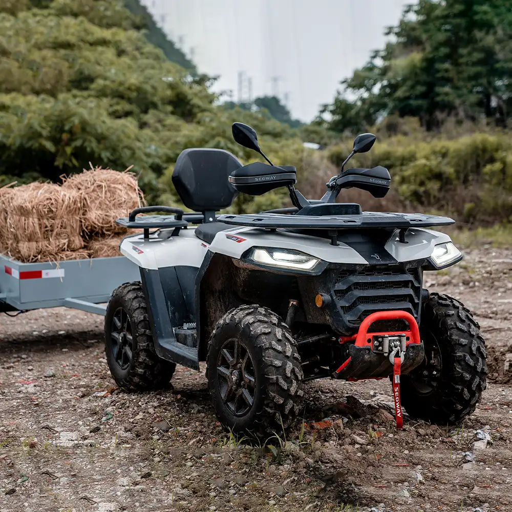 O potente motor de 499 cc e os ganchos robustos proporcionam rebocar cargas mais pesadas sem esforço, até em terrenos acidentados.
