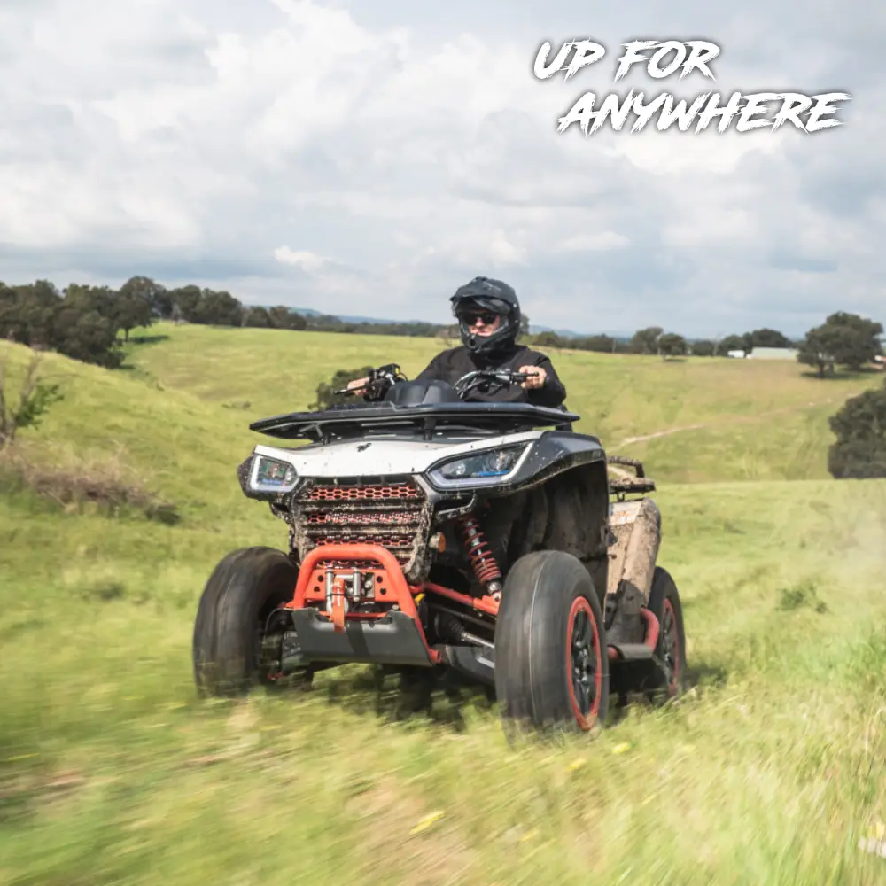 As jantes são em alumínio (14") com Beadlock e é equipado com travões de disco hidráulico nas 4 rodas.