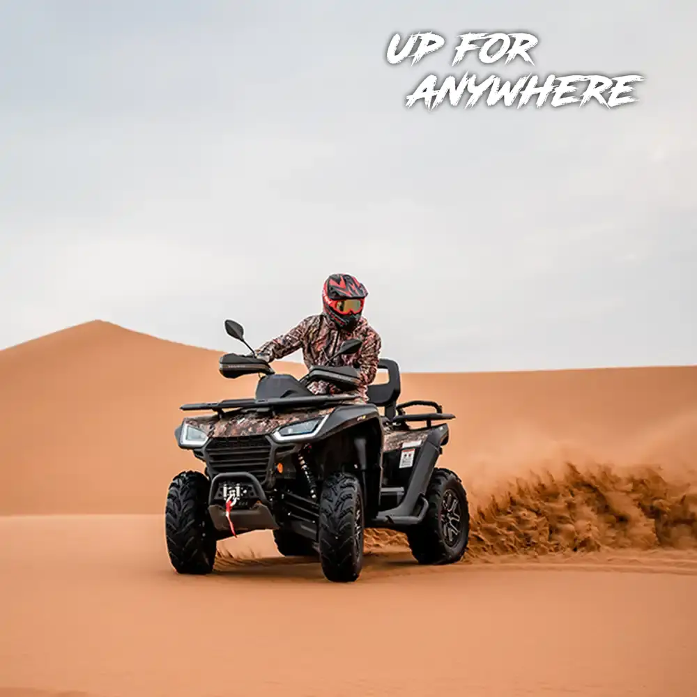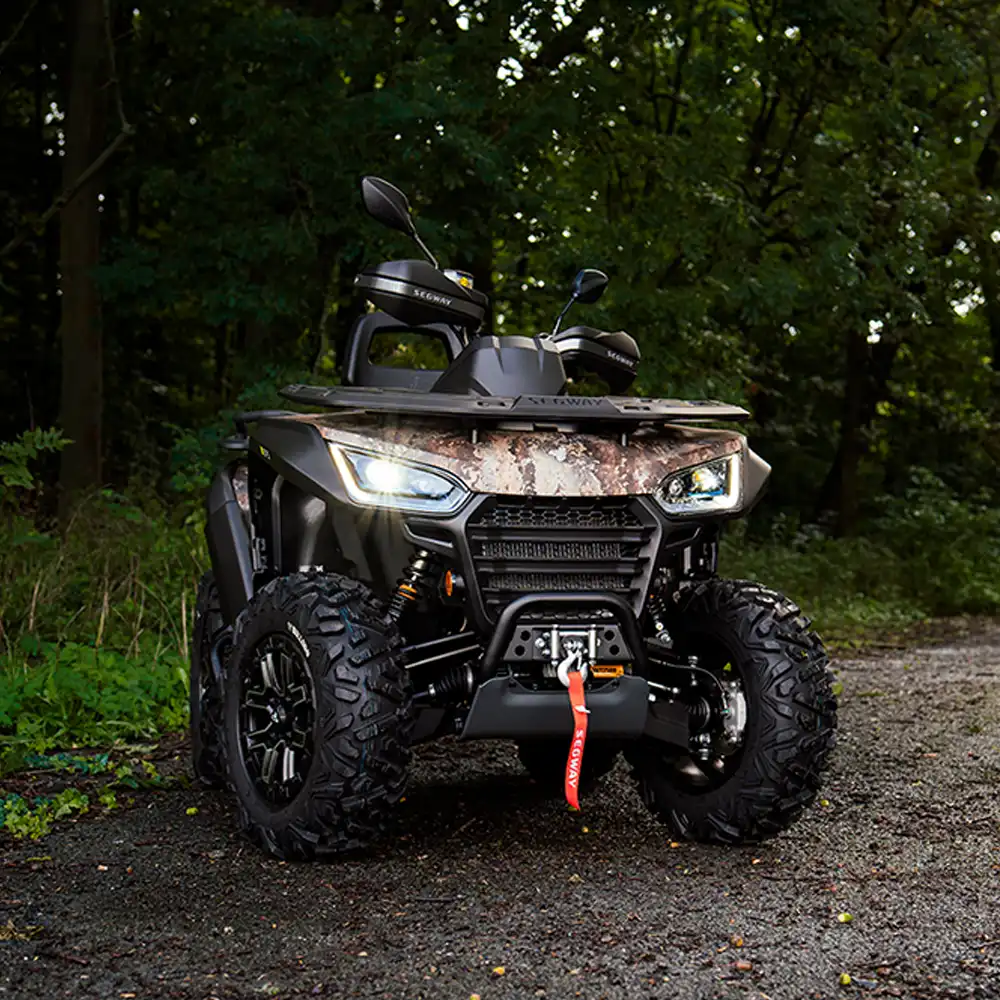 O modelo Segway AT6 LX CAMO vem equipado com tudo o que precisa no momento de se aventurar: Direção Assistida, Iluminação LED, Jantes de alumínio, Variador CVTECH®, Grelha dianteira e traseira, Guincho e Bola de reboque, Depósito de combustível de 23 L e Aplicação para o telemóvel "Smart Moving".