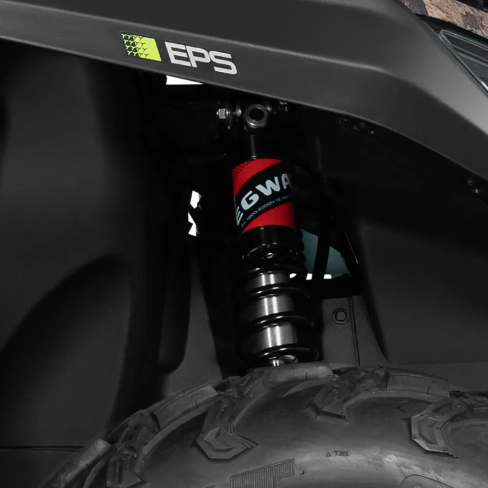 O modelo Snarler AT6 LX CAMO da Segway é equipado com uma suspensão dianteira e traseira independente de duplo triângulo, com um curso de 18 e 21 cm.
