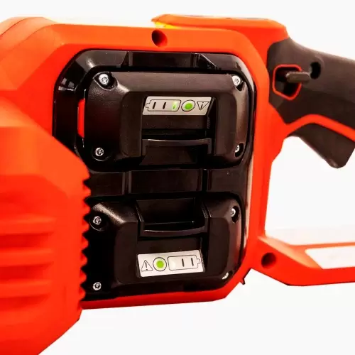 Motosserra a Bateria Hecht 9925, uma solução amiga do ambiente com performance não poluente, alimentada a bateria. A Hecht 9925 é entregue com 2 baterias de lítio de 2,5Ah.