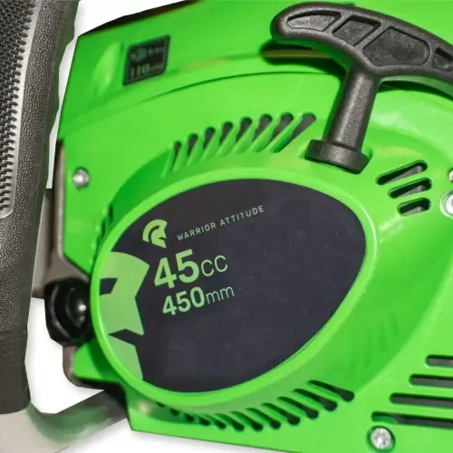 A barra Warrior Attitude de 45cm aliada ao potente motor de 45cm³, transmite ao operador a força que a operação necessita. Terá ao seu dispor a ferramenta perfeita para o corte e abate de árvores de pequeno e médio porte, bem como para cortar madeira mais grossa.