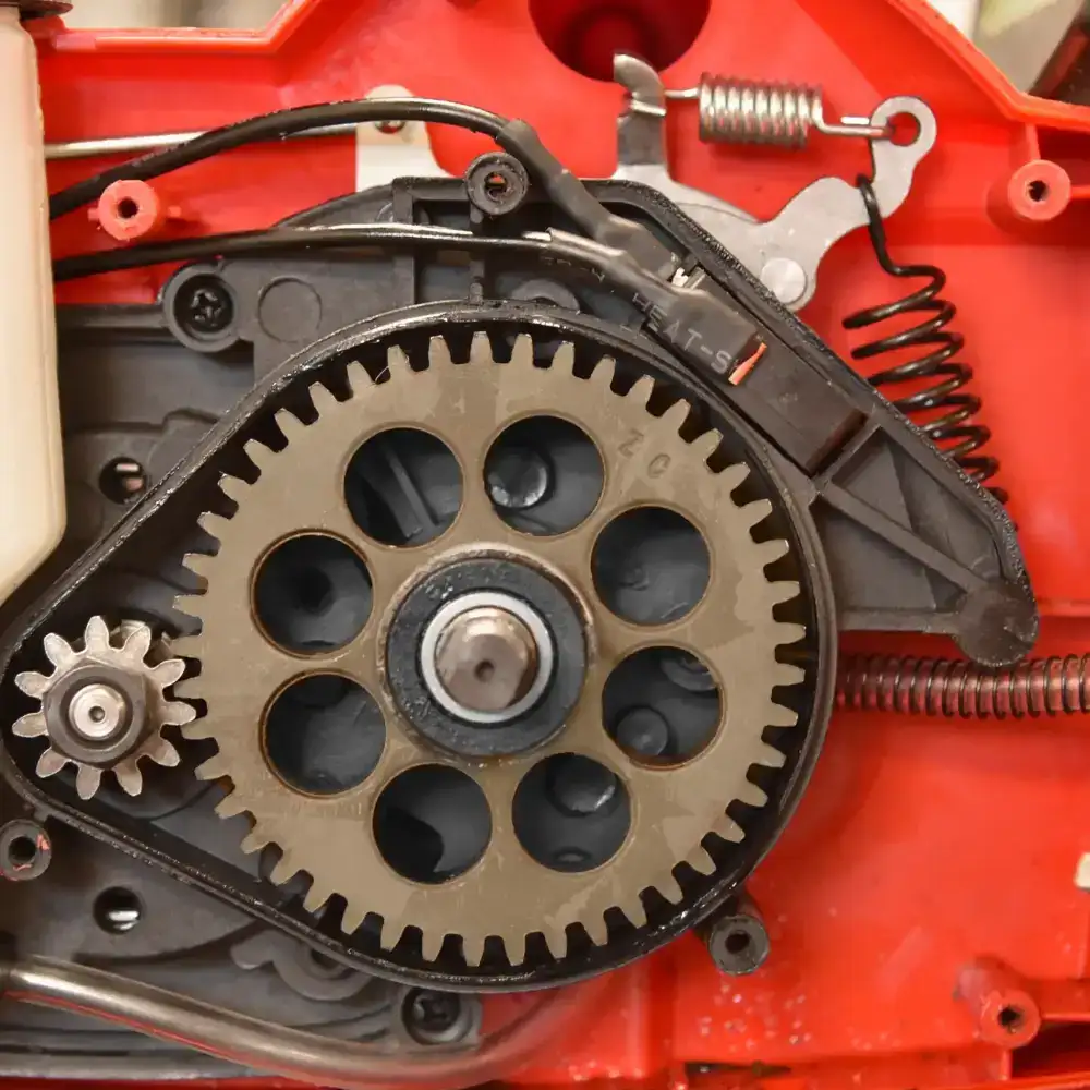 O motor posicionado longitudinalmente confere-lhe um perfil estreito, ideal para operar em espaços pequenos,  enquanto que o sistema de lubrificação automático da corrente garante um funcionamento suave e prolonga a durabilidade do conjunto.