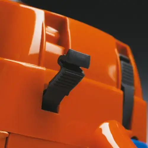 • Fixação para cabo - Um ponto resistente para apertar uma corda, tornando mais fácil içar a serra numa árvore.