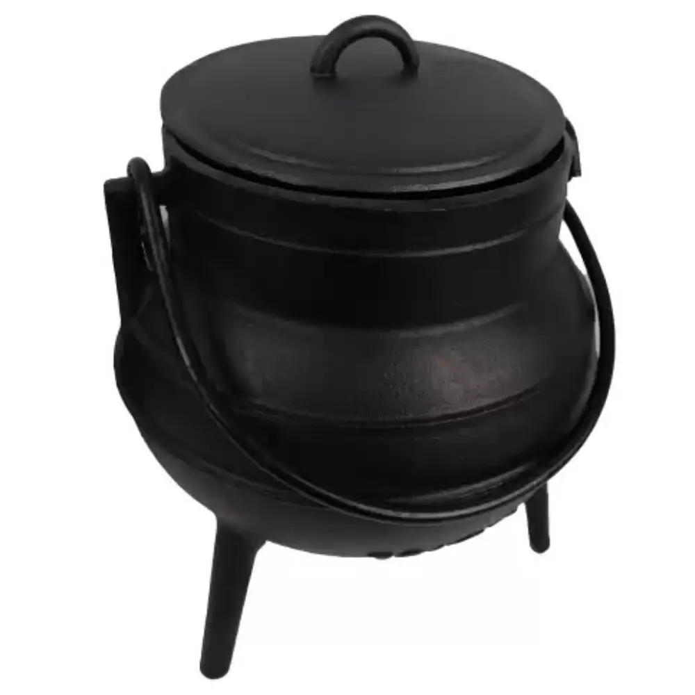 A construção em Ferro Fundido da Panela de 3 Pernas assegura ótima distribuição e armazenamento do calor.