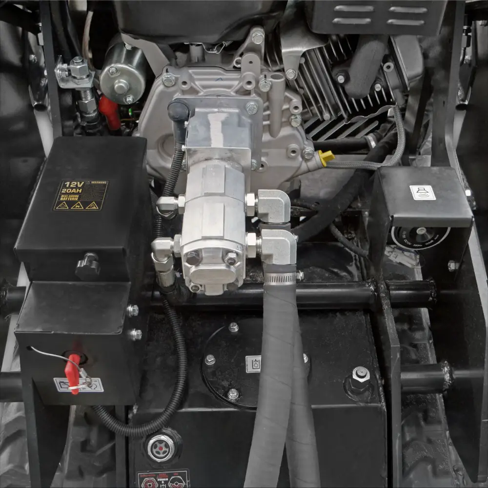 Equipado com um robusto sistema de rasto e plataforma para o utilizador destaca-se pela sua excecional manobrabilidade e estabilidade, mesmo em terrenos irregulares, escorregadios ou inclinados.