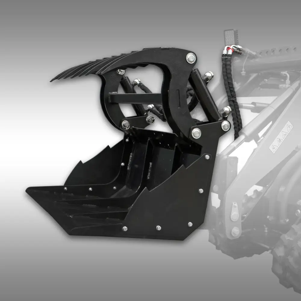 A estrutura resistente da garra com uma abertura total até 50 cm, permite que transporte objetos com, ramos, entulho, resíduos de jardim, ou materiais de construção com toda a firmeza e segurança.