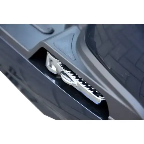 El conductor cuenta con un práctico gancho para equipaje ubicado en la parte inferior del manillar, entre los pies, ideal para llevar bolsos o pequeñas carteras. Cuenta con un pequeño compartimento con cremallera para guardar accesorios personales de forma segura y discreta. Bajo el asiento, hay un puerto de carga, para mayor comodidad al recargar las baterías.