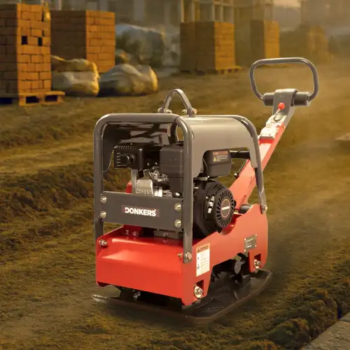 La compactadora de placa reversible Donker PC 150L es robusta y versátil. Equipada con un motor Loncin de 6,5 HP que genera una fuerza centrífuga de 25.000 N, incluso en los suelos más difíciles, es la solución perfecta para profesionales que necesitan nivelar tierra y arena, pavimentar adoquines, caminos, paisajismo y jardinería. El motor Loncin OHV de 6,5 HP genera una fuerza centrífuga de 25.000 N. Ofrece una compactación y solidificación eficaces en superficies de grava y caminos pavimentados. Excelente absorción de vibraciones gracias a su amortiguador de alta calidad, que ofrece mayor comodidad al usuario. Además, cuenta con una palanca que facilita el control de la máquina, tanto hacia adelante como hacia atrás. Peso de la placa: 150 kg. Importante: Por razones de seguridad, el motor se entrega sin aceite. Añada aceite hasta el nivel correcto antes de arrancar el motor.