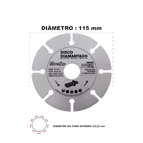 Disco Diamantado Madeira MacFer 115mm