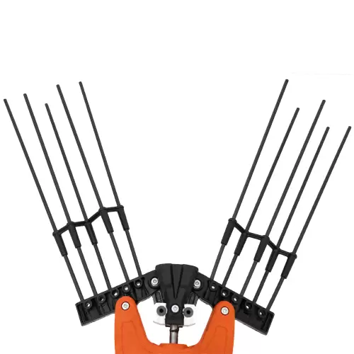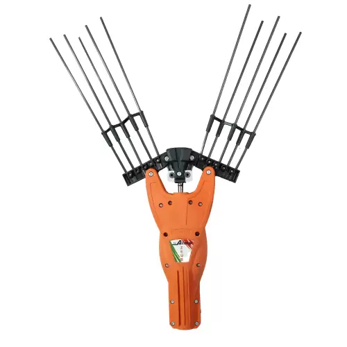 Cabezal cosechador ZEUS 5V5 para acoplar a equipos multifunción o a un solo motor, con sistema de varillas laterales oscilantes. Ideal para la cosecha de aceitunas, almendras, nueces, avellanas o café en operaciones más exigentes. Excelente capacidad productiva. La excelente ergonomía del cabezal, combinada con las largas varillas de fibra de carbono, garantiza una excelente penetración en las plantas. Cabezal cosechador ZEUS 5V5 con sistema de varillas laterales oscilantes para reducir las vibraciones. Las 10 varillas de fibra de carbono (5+5) ofrecen alta durabilidad y bajo mantenimiento. Varillas giratorias de aceitunas ZEUS.