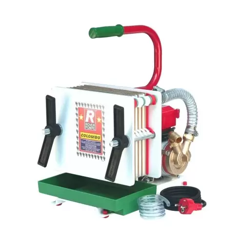The COLOMBO® PULCINO® FILTER consists of a special electric pump and a filtration system called a liquid system with pressed plates. This particular type of filtration allows for excellent purification levels of beverages without altering the fundamental characteristics of the decanted liquid; therefore, it is particularly appreciated for domestic filtration, but also in the professional sector, such as wineries, pharmaceutical factories, laboratories, breweries; in short, wherever it is necessary to filter a beverage to serve or bottle it perfectly clear and without any trace of undesirable residues. What liquids can it use? The pump can be used to transfer any type of clean, commonly used liquid that is not chemically aggressive or abrasive. Some examples: water, wine, milk, vinegar, low-viscosity oily solutions, neutral fluid detergents, diesel.