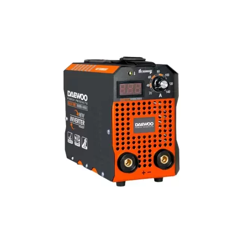 Soldadora eléctrica DAEWOO Inverter compacta de 140 A monofásica, ideal para trabajos de soldadura de mantenimiento, construcción y bricolaje. La soldadora eléctrica DAEWOO Inverter de 140 A es la solución más eficiente para unir permanentemente dos o más piezas metálicas. Utiliza electrodos con un diámetro de 1,6 a 3,2 mm. Su ciclo de trabajo es del 60 %. La tecnología Inverter de la soldadora eléctrica DAEWOO garantiza una corriente constante y estable incluso con variaciones de tensión. Excelente para sus necesidades de soldadura. Apta para uso doméstico con corriente monofásica. Su correa para el hombro hace que la soldadora DAEWOO 160 A sea versátil y práctica. Sus dimensiones compactas y su ligereza facilitan el almacenamiento y el transporte, manteniendo un rendimiento óptimo. Soldadora DAEWOO 160 A con regulador de tensión. La potencia de soldadura varía de 20 a 140 A.