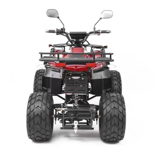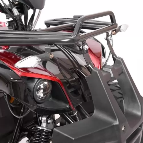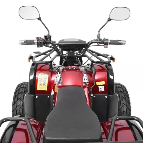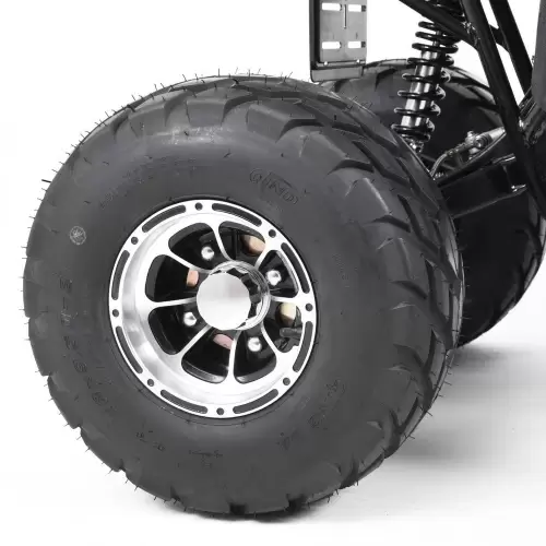 Cuatrimoto a batería equipado con suspensión delantera y trasera, rines de aluminio y neumáticos de alta calidad, que garantizan la seguridad tanto en el campo como en la carretera, frenos de disco traseros y un centro de gravedad perfecto. Estos factores permiten una conducción suave y estable, con gran seguridad.