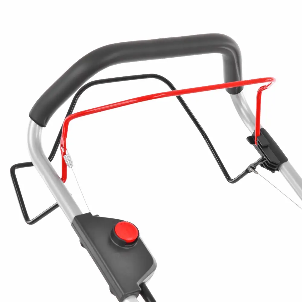 The motor start lever occupies the entire width of the handle, providing greater control and ease of use, while the safety button prevents accidental starts.