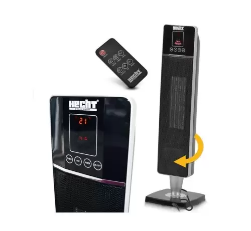 Esta máquina tiene una potencia máxima de 2000 W, lo que le confiere una alta eficiencia energética. Incluye un controlador inalámbrico que permite programarla según el ambiente deseado, es decir, controlar la temperatura deseada entre 10 °C y 49 °C, todo de forma automática, incluyendo el encendido y apagado automático del ventilador. Además, puede elegir manualmente el modo de potencia de la máquina entre dos opciones: 1200 W o 2000 W, y programar su encendido y apagado mediante un temporizador. Además, la máquina puede funcionar únicamente como ventilador, sin necesidad de calentar, sino únicamente para ventilar. La potencia de ventilación se programa manualmente en 3 niveles, al igual que la función giratoria, que garantiza una distribución lo más uniforme posible.