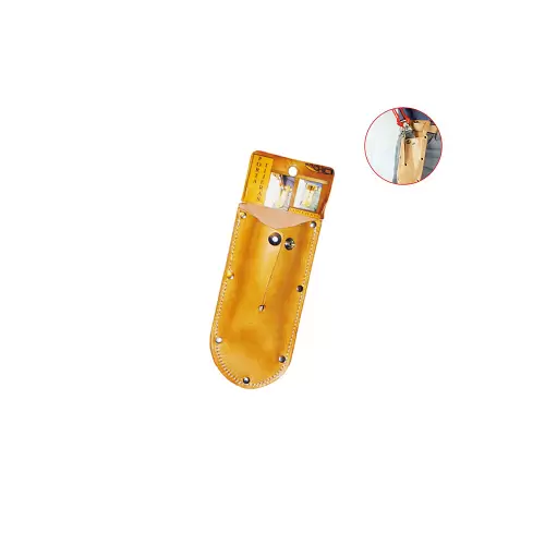 Pruning shear holder suitable for all models on the market. Incorporates a metal clasp at the top to prevent losing the shears when not in use. Made of 1.8 – 2 mm natural leather. Rear pin for belt attachment, pin width 35mm. Material: First Quality Bovine Leather Width: 10 cm Height: 27 cm Color: Light Brown Stitching: Safety stitching made with continuous filament polyester thread nm 13/3 Weight: 150 g