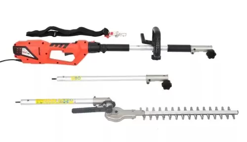 Al colocar el motor detrás del mango, HCT ha garantizado una distribución óptima del peso del cortasetos, lo que permite un manejo cómodo para la espalda y un trabajo sin fatiga. El mango ergonómico, el asa de transporte adicional y el mango en forma de arco garantizan un trabajo seguro y equilibrado. La posición de corte deseada de la barra de corte se puede ajustar en siete pasos de 125°, desde aproximadamente -45° hasta +90°. El cortasetos eléctrico alcanza una capacidad de corte de 20 mm a 6600 rpm y una longitud de corte efectiva de 410 mm. El robusto engranaje metálico garantiza una larga vida útil y la cuchilla está protegida por el maletín durante el transporte o almacenamiento.