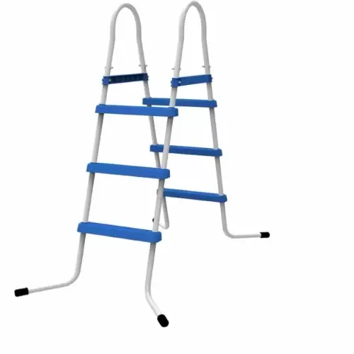 Escalera de piscina, esencial para disfrutar de su piscina con seguridad. Tiene una altura máxima de 90 cm, base de acero y es resistente a la radiación UV y a todos los productos químicos presentes en el agua.
