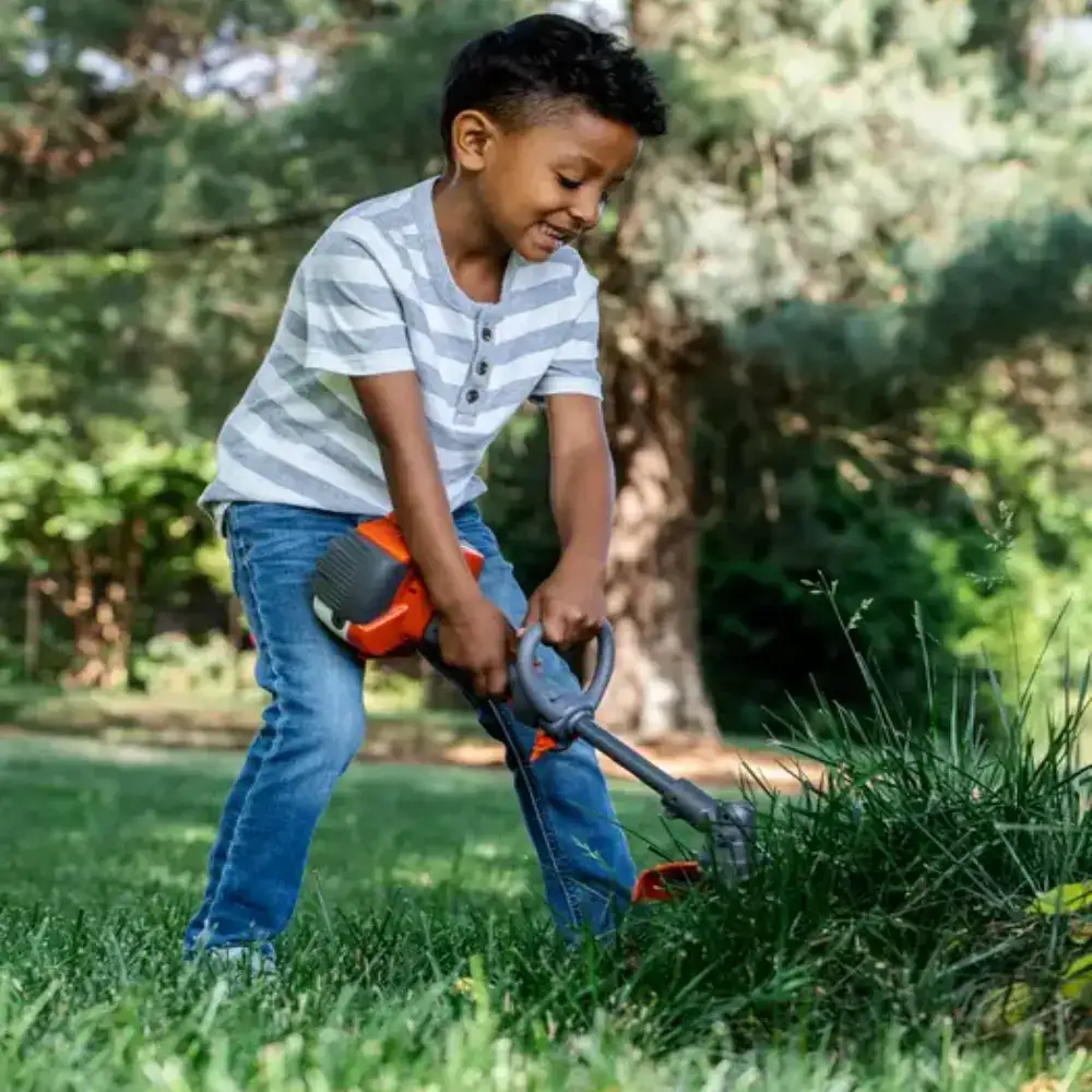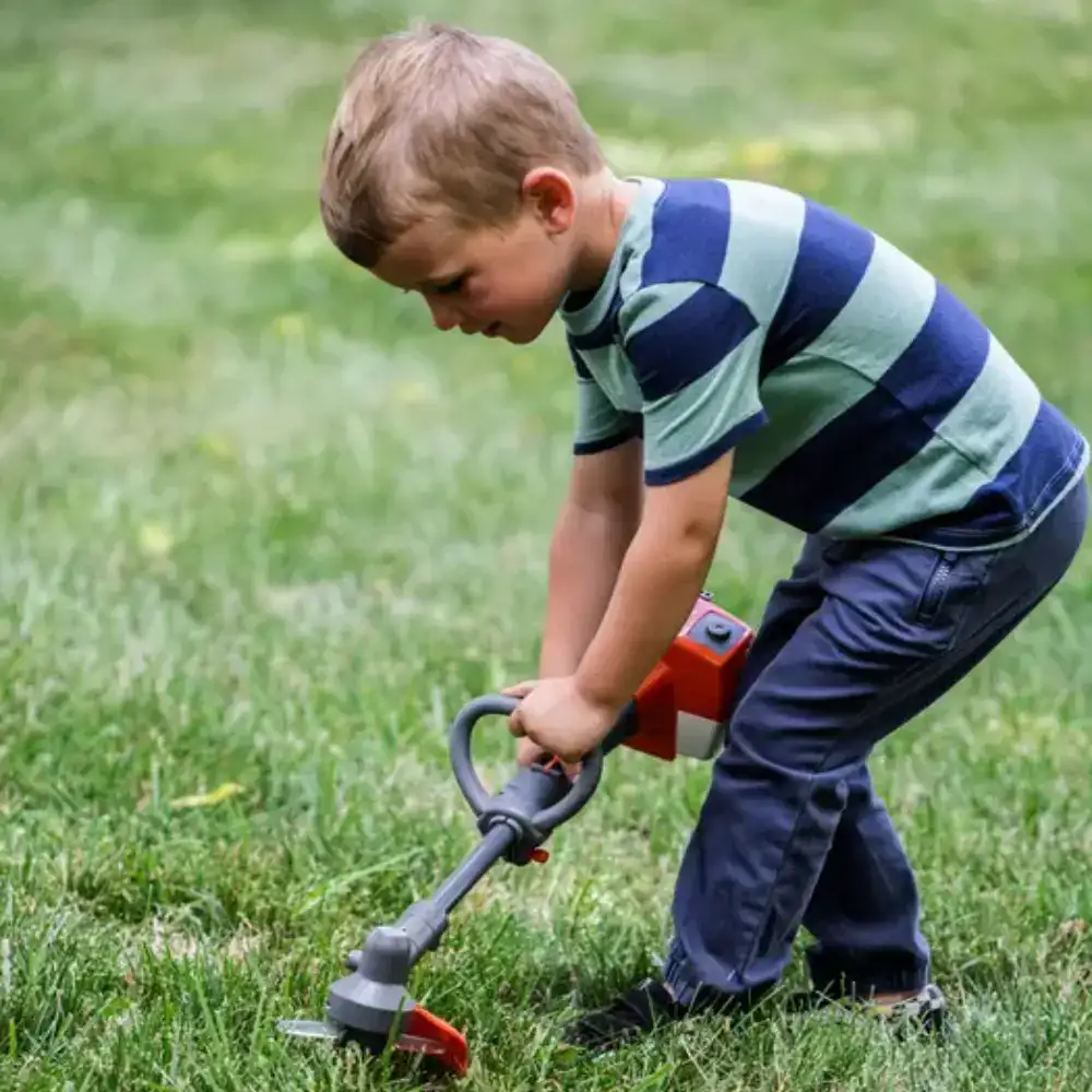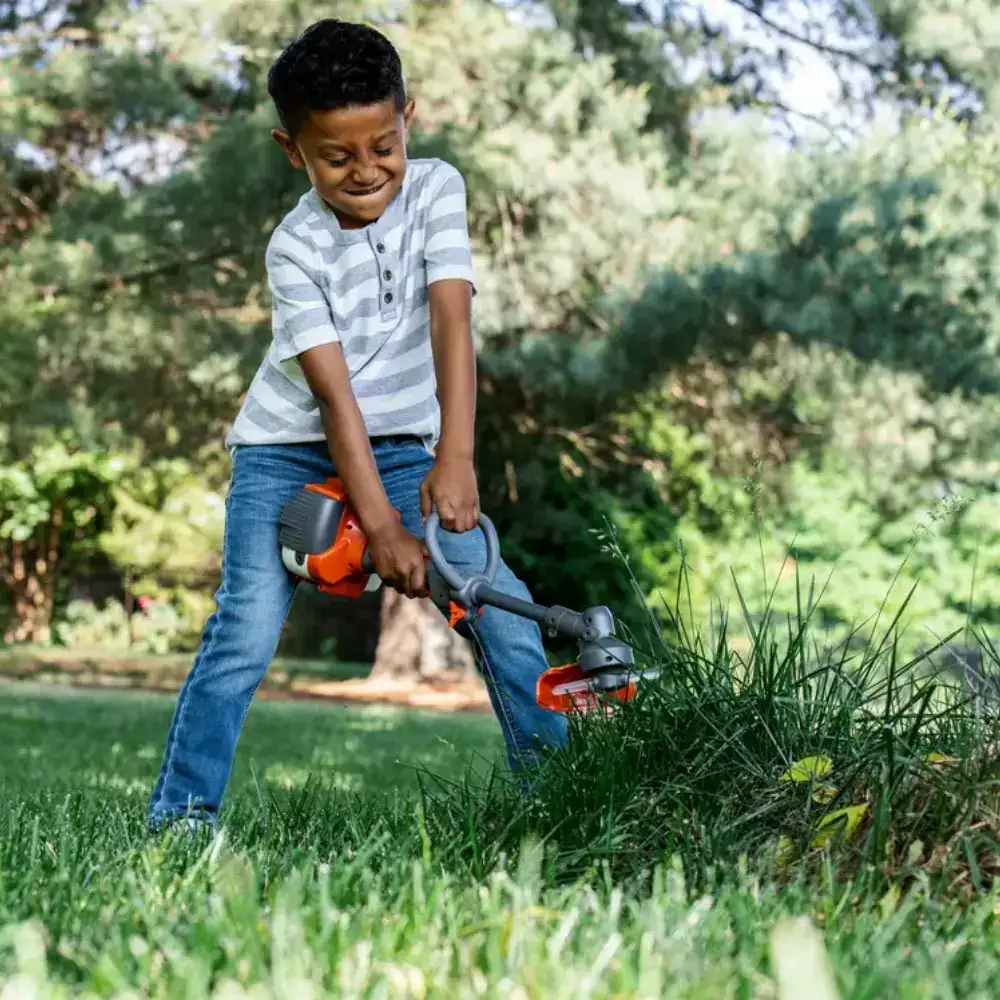 Equipada con un hilo de corte de plástico completamente inocuo, garantiza la tranquilidad de los padres y la diversión de los pequeños, permitiéndoles cortar el césped sin ningún peligro.