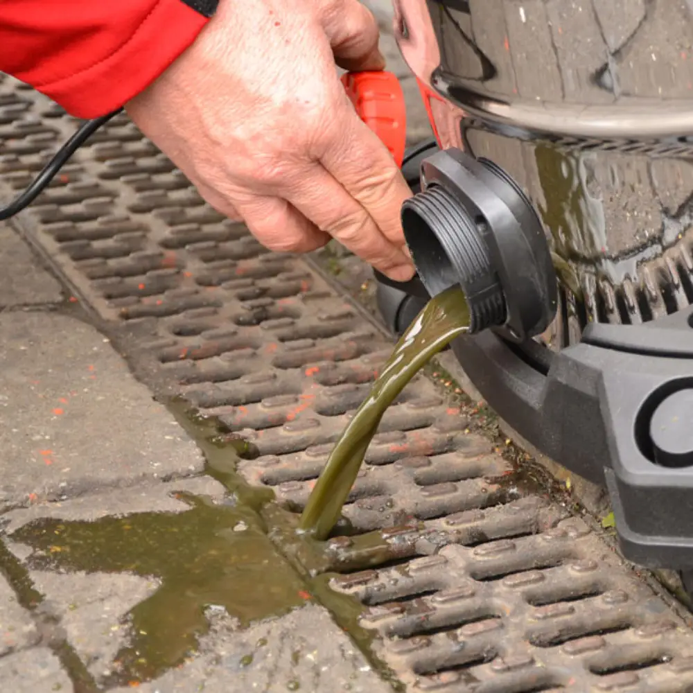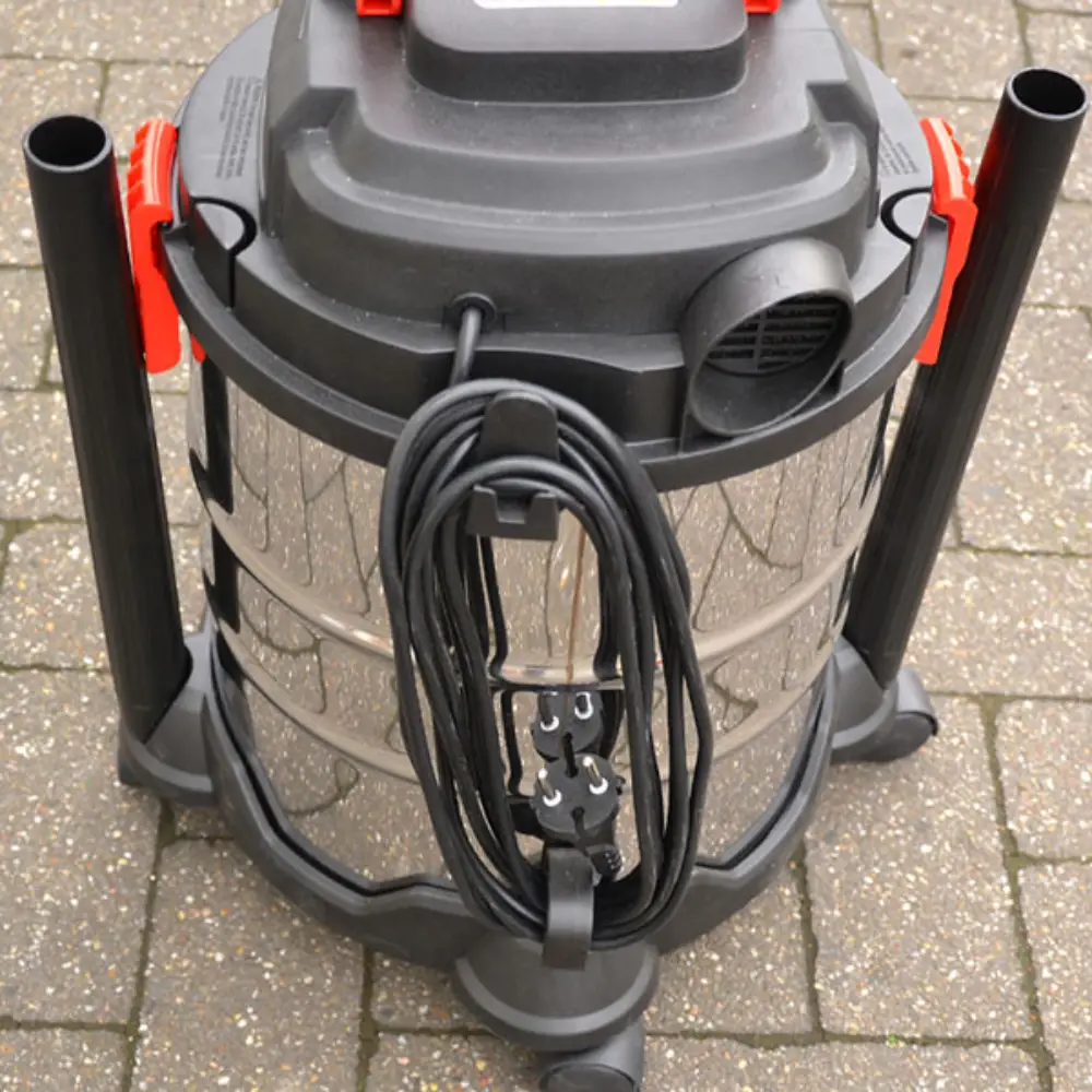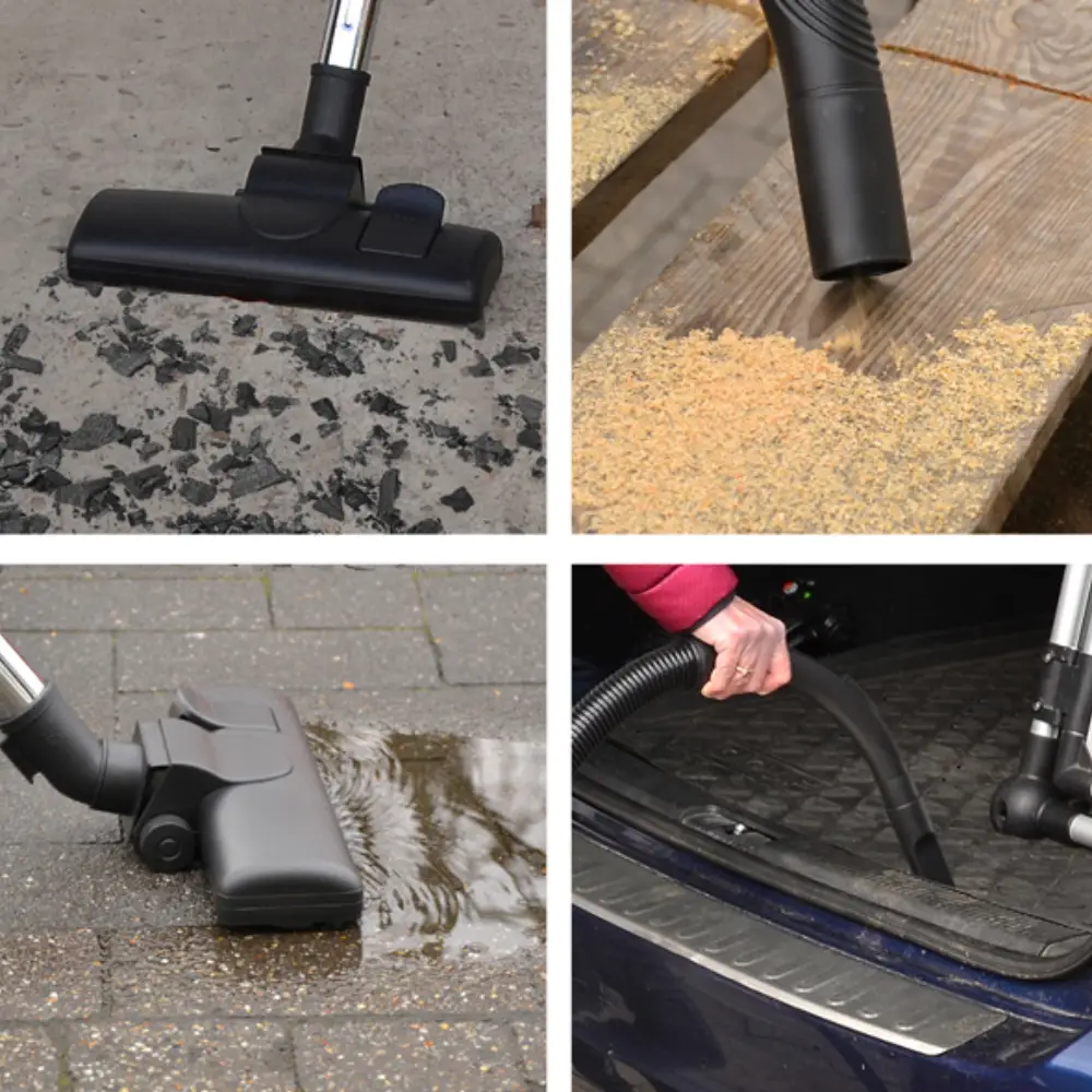 Para ello, simplemente retire el filtro y el líquido permanecerá en el depósito sin dañar el motor. Contiene un drenaje en la parte inferior del depósito para evacuar líquidos o polvo sin tener que abrir la tapa. Accesorios incluidos: Manguera, tubo metálico, boquilla ranurada, boquilla de cepillo, filtro cilíndrico grande, bolsa para polvo (papel).