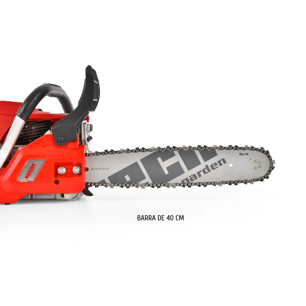 La barra de corte de la motosierra Hecht 56 tiene 40 cm de largo, lo que ofrece un excelente alcance y precisión durante los cortes.