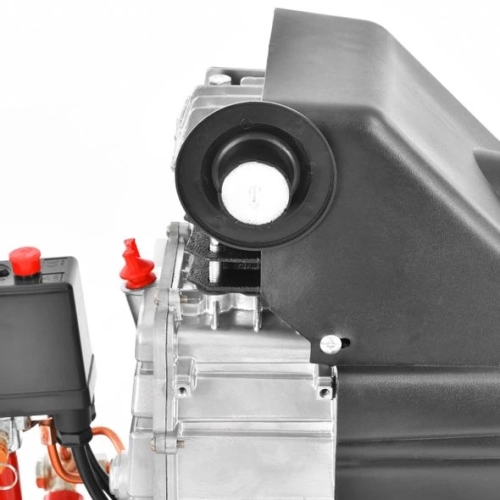 El arranque automático se realiza mediante un presostato; tras presurizar el depósito de aire al valor establecido, el compresor se apaga automáticamente y solo se reinicia cuando la presión desciende por debajo del nivel mínimo. El nivel de aceite y el nivel de aceite se pueden comprobar mediante una mirilla en el cuerpo del compresor. La manguera de presión y la pistola de aire no forman parte del compresor y pueden adquirirse como accesorios opcionales.