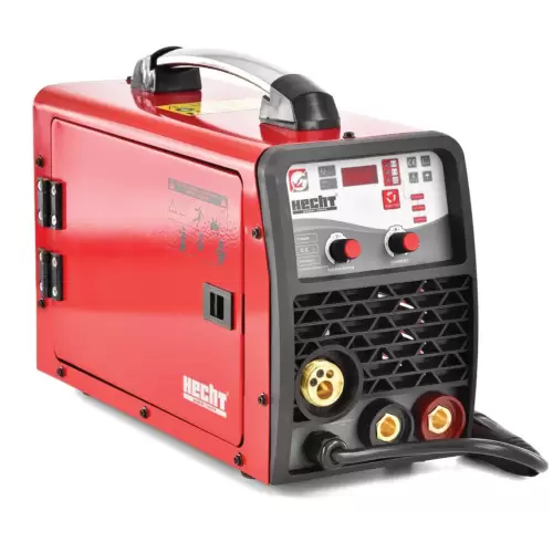 Soldadora de hilo inverter HCT1830 con electrodo y posibilidad de usar gas. Soldadora inverter MIG/MAG/MMA con opción de soldadura LIFT TIG, disponible por separado. Tecnología IGTB.