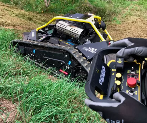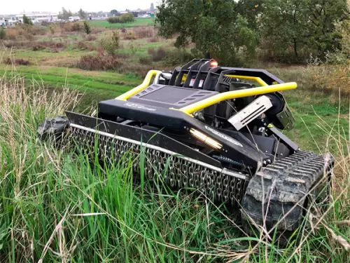 Máquina de orugas con control remoto diseñada para cortar en condiciones extremas.