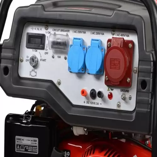 El generador trifásico HCT GG 8000 de 8,75 kVA siempre tendrá suficiente energía disponible. Los cortes de luz o la falta de suministro eléctrico ya no serán un problema con el potente HCT GG 8000. Ya sea de camping, en obras, en casa, en barcos o en el jardín, el generador HCT se puede usar prácticamente en cualquier lugar y ofrece suficiente potencia para una amplia gama de aplicaciones con una potencia continua de 6500 vatios. Ocho horas de funcionamiento continuo están garantizadas gracias a su gran depósito de combustible de 25 litros. El generador, con una cilindrada de 420 cc, está propulsado por un motor de 4 tiempos de alta calidad equipado con un interruptor de sobrecarga integrado. El HECHT GG 8000 debe alimentarse con gasolina normal. El práctico indicador de combustible en la parte superior del dispositivo le permite tener siempre a la vista el nivel de llenado del depósito y saber cuándo repostar. El dispositivo es un generador síncrono y cuenta con una corriente trifásica de 400 V, dos tomas de corriente alterna (CA) de 230 V y una toma de corriente continua (CC) de 12 V, por ejemplo, para cargar una batería. El generador HCT GG 8000 es especialmente adecuado para dispositivos con alta corriente de arranque. Gracias a su estable estructura de acero, su robusto engranaje impulsor y su asa plegable integrada, el generador de energía HCT GG 8000 es móvil y versátil. Equipado con amortiguadores de vibraciones de alta calidad para un funcionamiento suave. Gracias a su tamaño compacto (700 x 660 x 660 mm), el dispositivo puede almacenarse después de su uso para ahorrar espacio.