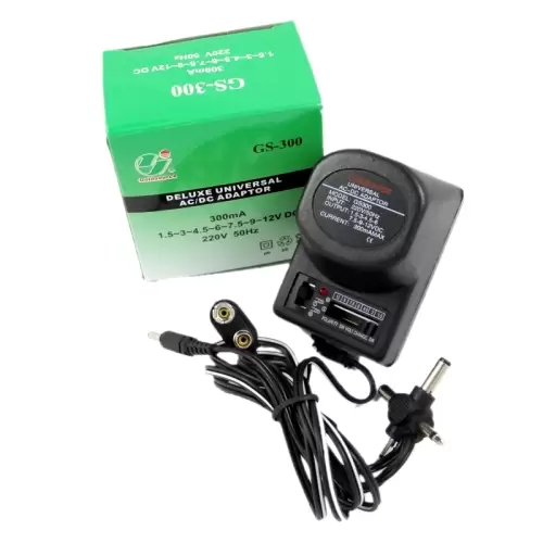 Transformador Universal300 Millamperios, la fuente de alimentación que permite que los pequeños electrodomésticos de su hogar funcionen sin pilas. El consumo del Transformador Universal varía de 0 a 300 mA. Adaptador Universal.