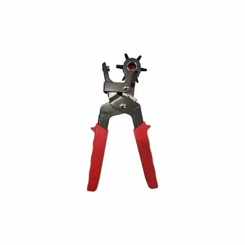 Los alicates perforadores profesionales están fabricados en acero endurecido y forjado, con mangos recubiertos que mejoran el agarre. Equipados con un mango ergonómico recubierto, cabezal giratorio, apertura automática y punzones intercambiables, permiten perforar con precisión cuero y otros materiales blandos.