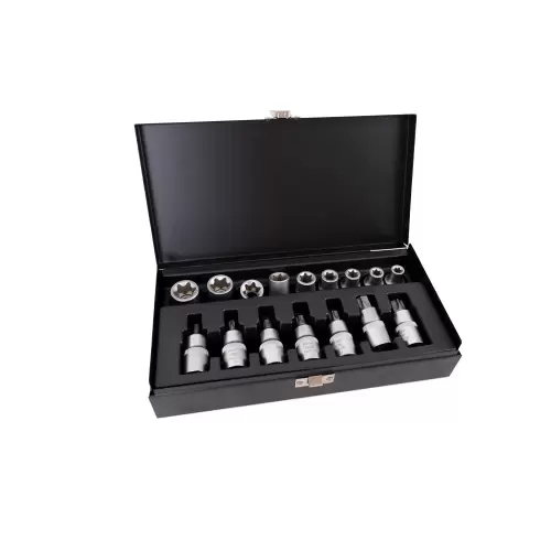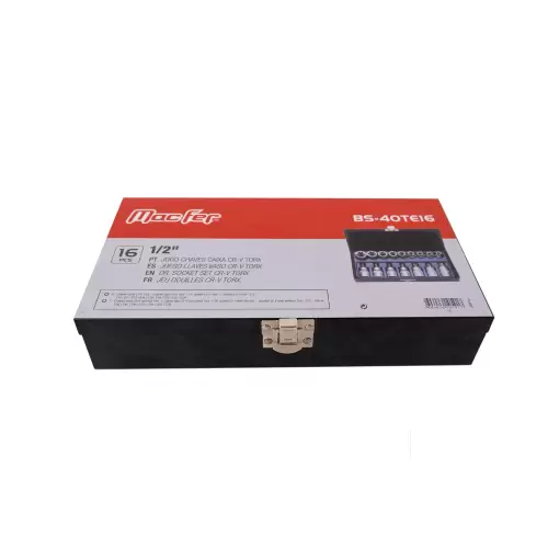 Juego de llaves de tubo CR-V TORX de 16 piezas para las aplicaciones más comunes en el taller y entornos similares.Juego de llaves de tubo con 16 piezas.