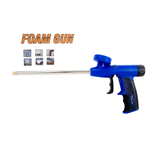Pistola de espuma de poliuretano para aplicar espuma de poliuretano. Ideal para llegar a zonas de difícil acceso gracias a su boquilla larga. Para rellenar pequeños agujeros, grietas y huecos, así como agujeros en marcos de puertas y ventanas. La pistola de espuma de poliuretano puede funcionar con un dispensador de espuma, que dispensa una cantidad constante con cada uso. Mango ergonómico para mayor comodidad.