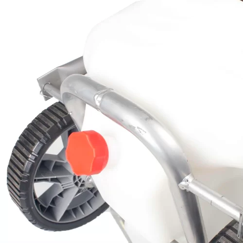 Pulverizador de gasolina con carro de 50 l con carrete de manguera para una organización óptima y un transporte sencillo. La manguera tiene una longitud de 30 m para mayor libertad de movimiento durante el trabajo.