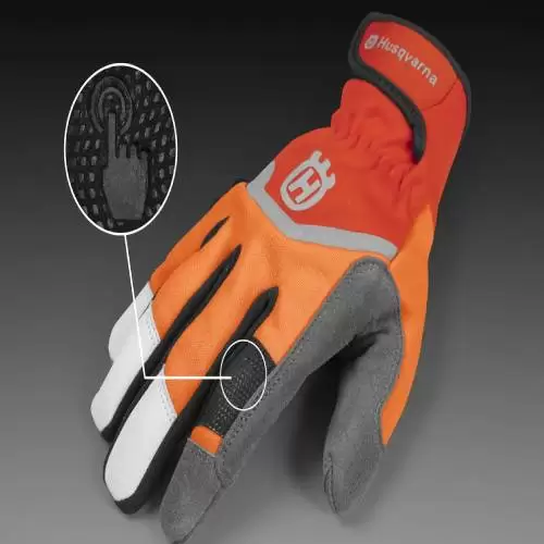 Guantes de protección Husqvarna cómodos y ajustados, diseñados para trabajos forestales.