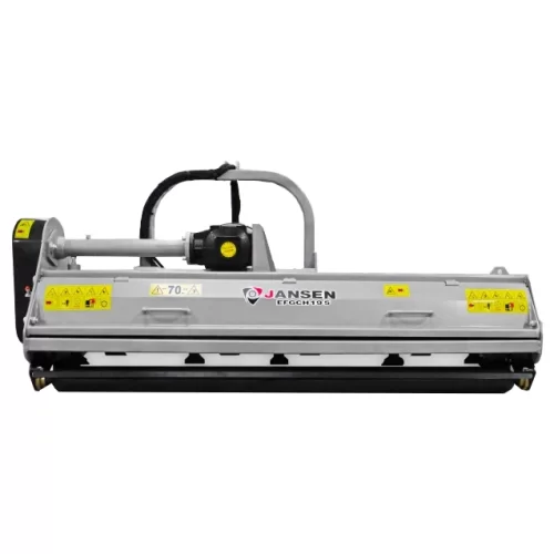 By using the hydraulic side shift function, the Jansen EFGCH-195 Hammer Shredder can move both left and right. This operation requires a hydraulic control circuit on your tractor, as the cutting unit has a double-acting hydraulic cylinder for this purpose.